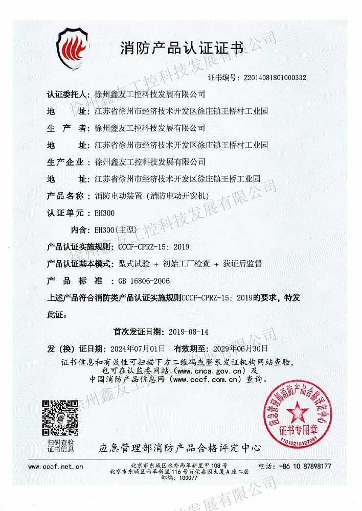 消防產(chǎn)品認(rèn)證證書EH1000...