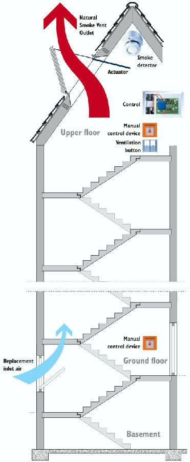 由智能控制箱、消防緊急按鈕、煙霧感應(yīng)器、墻裝開關(guān)、遙控器、風(fēng)雨感應(yīng)器、開窗器等組成,智能消防控制箱與建筑的消防控制室相連,并連接煙霧感應(yīng)器,消防緊急按鈕,發(fā)生火災(zāi)時(shí)無論手動(dòng)報(bào)警信號(hào)還是自動(dòng)報(bào)警信號(hào)傳送至控制箱,控制箱均立即自動(dòng)命令下級(jí)開窗器進(jìn)行開窗動(dòng)作,從而迅速將室內(nèi)的有毒煙霧排出。
